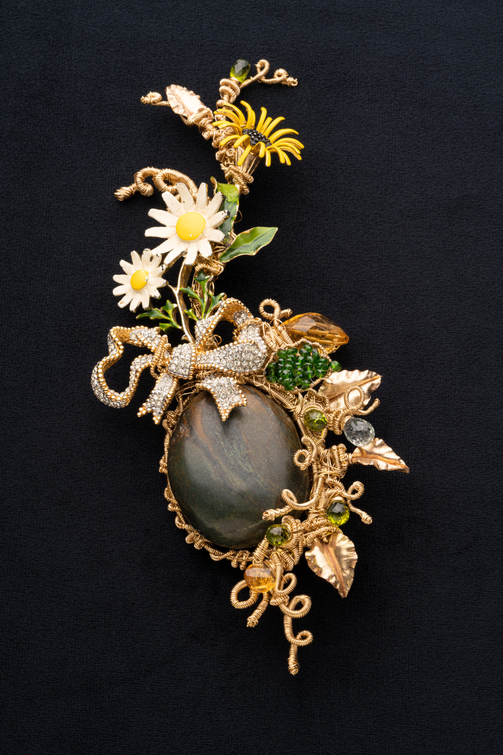 Mindy Lam (Chinese-American), Golden Imperial Fantasy: Metal Lace Clutch (detail), 86kt. citrine, 14kt. gold-filled wire, assorted vintage brooches, vintage rhinestone. Courtesy of the Artist.